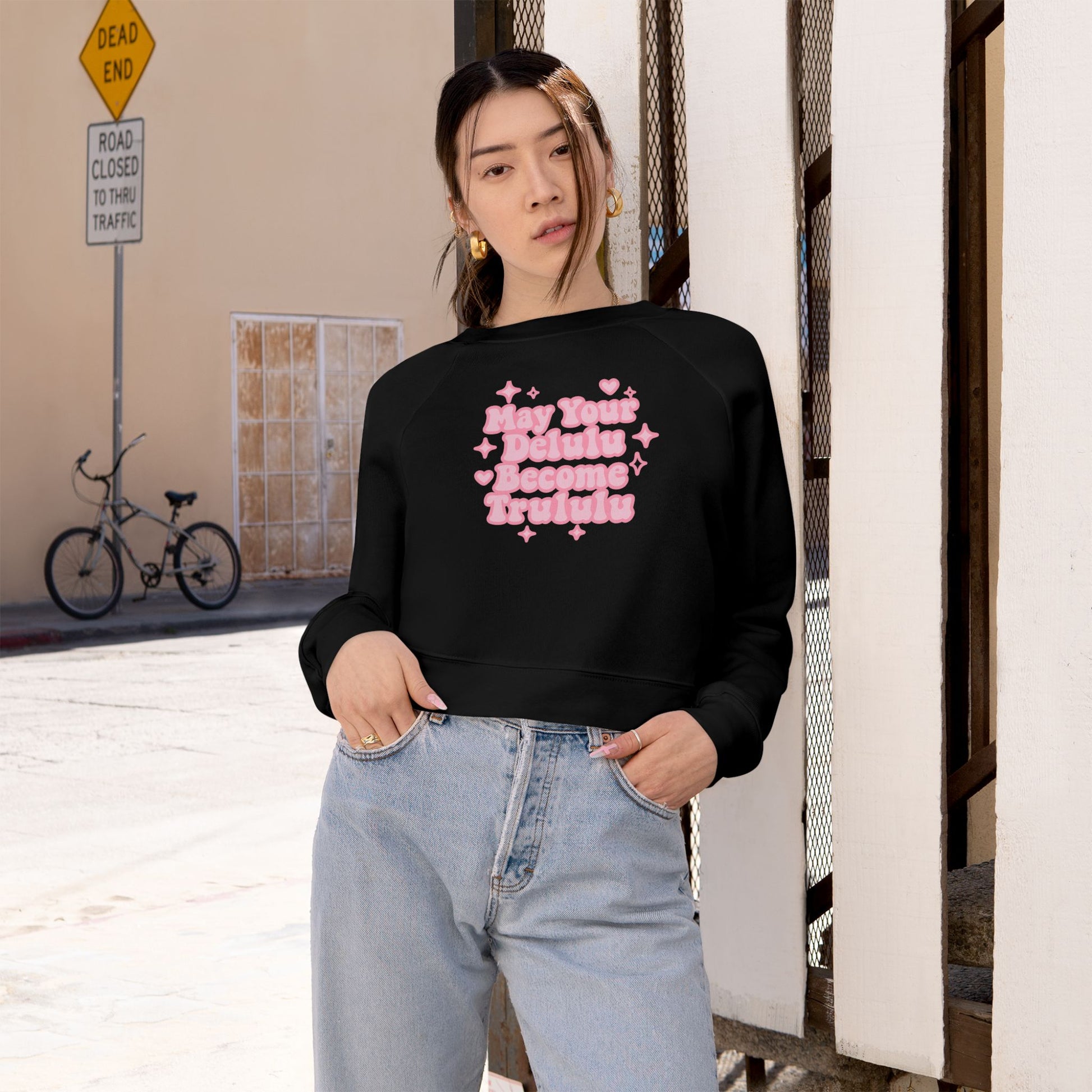 Cropped Fleece Pullover 'Delulu Become Trululu'
