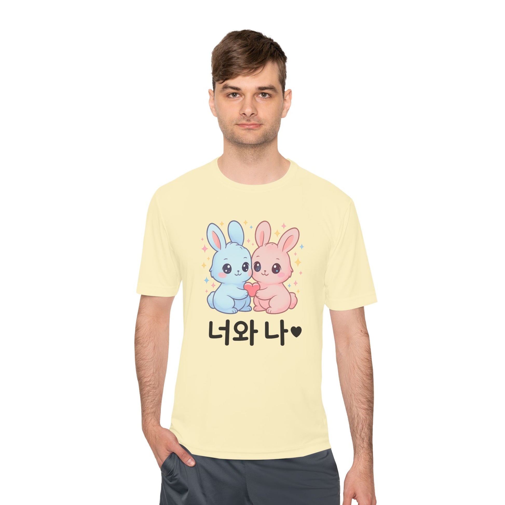 Kawaii K-Pop Moisture Wicking Tee with Love Bunnies Design