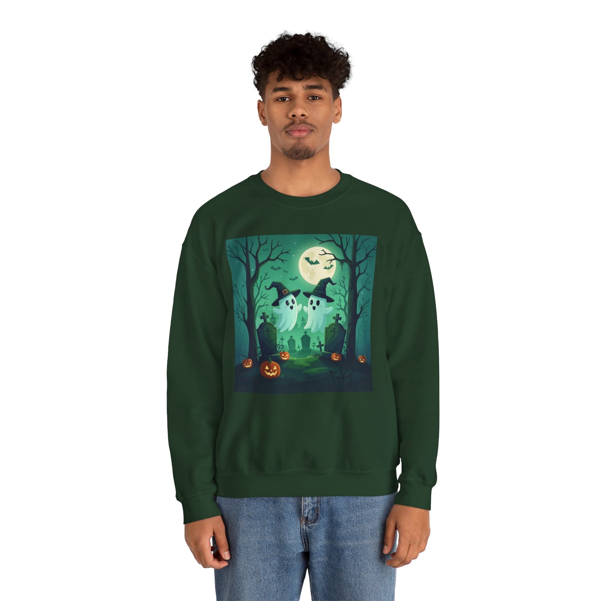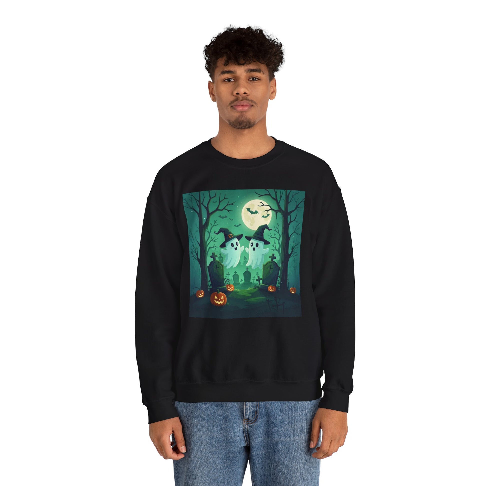 This Spooky Ghost Couple Sweatshirt is perfect for those who love Halloween and spooky vibes. Made with a cozy fabric blend, it provides warmth and comfort during the colder months. The classic fit and crew neckline offer a stylish look while the durable stitching ensures longevity. Ideal for adults looking for a fun and festive sweatshirt for Halloween celebrations.